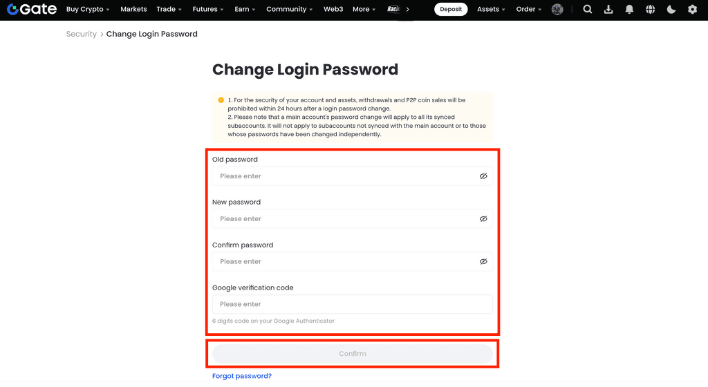 Comment réinitialiser le mot de passe de connexion sur le site web de Gate :
