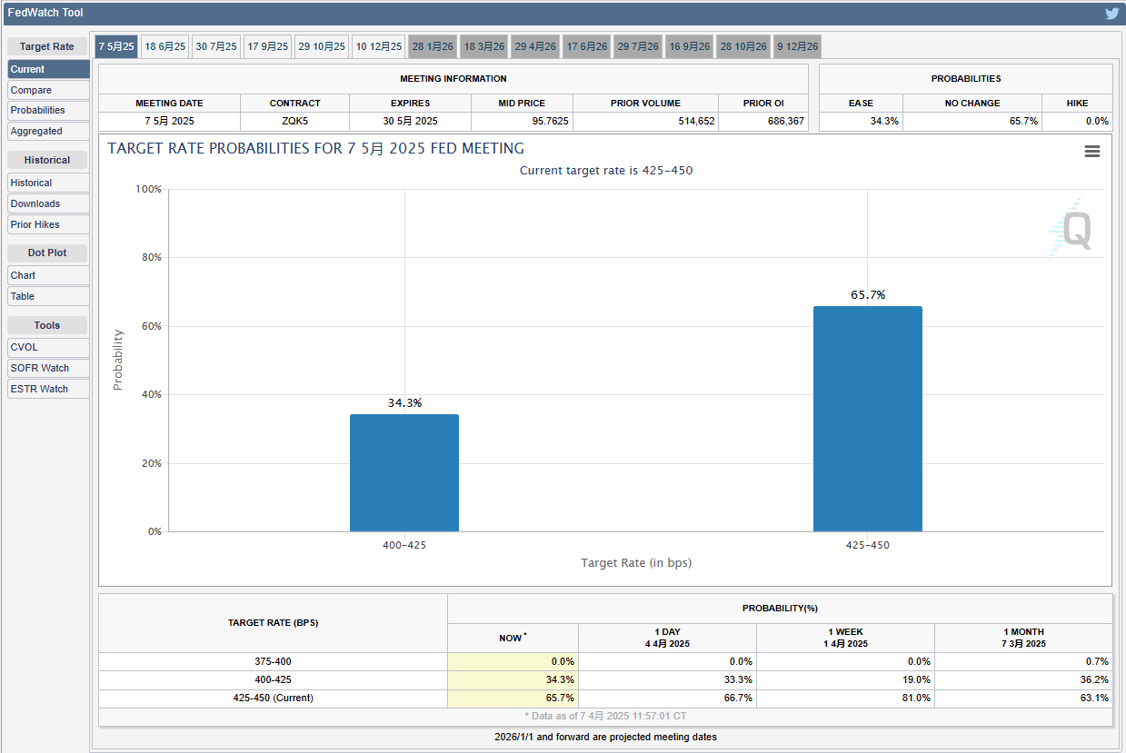 現在(2025年4月7日)、CMEの「連邦準備調査」は5月の利下げ25ベーシスの確率を54.6%と示しており、市場の予想はわずかに先行しています。しかし、債券市場はまだ景気後退を完全に織り込んでおらず、10年物米国債利回りは4.1%-4.2%で推移しており、流動性危機はまだ顕在化していません。連邦準備制度は利下げを直ちに行うのではなく、まず融資手段を使う可能性が高いです。