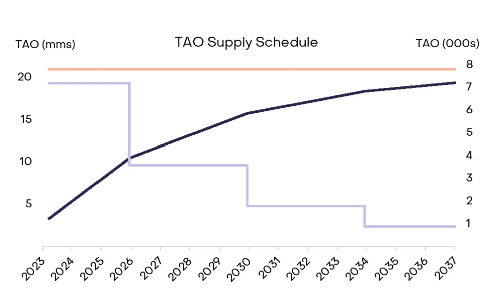 ビットコインが現在4回目の4年ごとの半減期を迎える中、他の分散型プロジェクトも同様の供給削減サイクルを採用しており、Bittensorも2021年のローンチ以来初めての半減期に近づいています。
