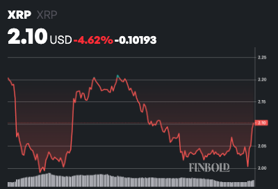 しかし、この資産は急激な資本流入の中で短期的な強さを見せています。記事執筆時点でXRPは2.10ドルで取引されており、過去24時間で3%以上上昇したものの、週単位では4.6%下落しています。