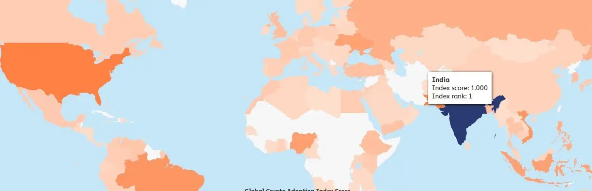 また、Chainalysisが発表した2025年版グローバル暗号通貨普及指数では、インドが1位、続いて米国とパキスタンがランクインしました。