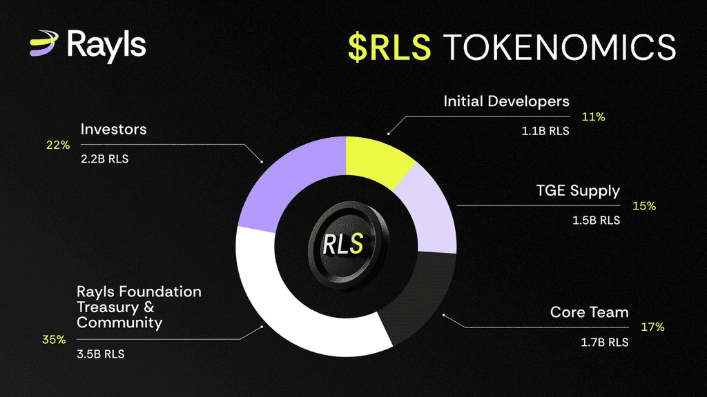 $RLSはRaylsネットワークの唯一の機能・ガバナンストークンであり、その経済モデルは慎重に設計されている。ネットワークの実際の利用とトークン価値の成長を密接に結びつけることを目的としている。