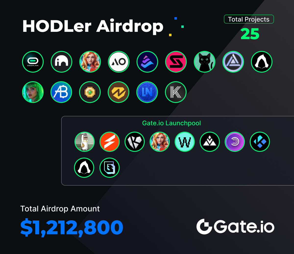 16 de março a 31 de março de 2025, A Gate lançou 30 novos projetos, 10 projetos Gate Launchpool e 15 projetos Airdrop gratuitos para HODLers, com um valor total de Airdrop para HODLers de $1,212,800.