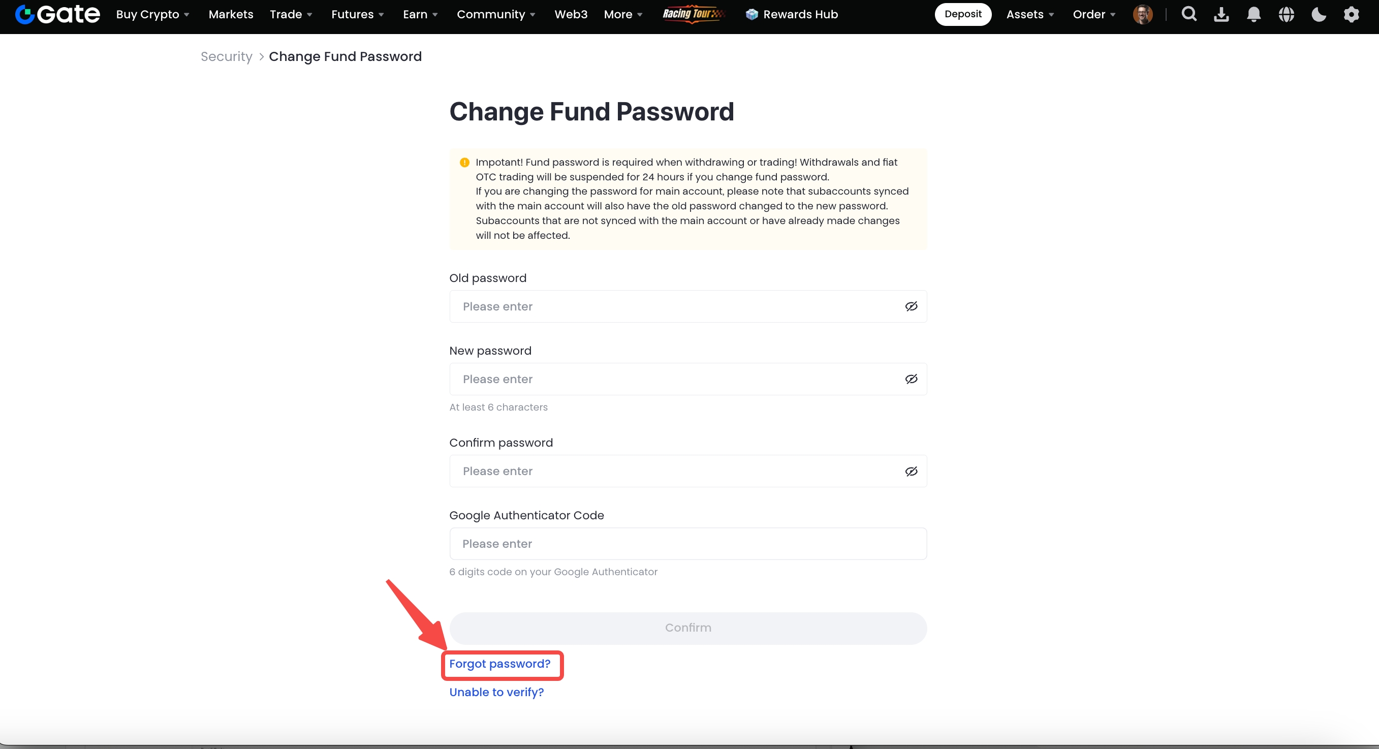 Quando opera na plataforma da Gate, é necessário inserir a assinatura eletrónica para efetuar as ordens. Caso se tenha esquecido, poderá redefini-la a partir das instruções abaixo.