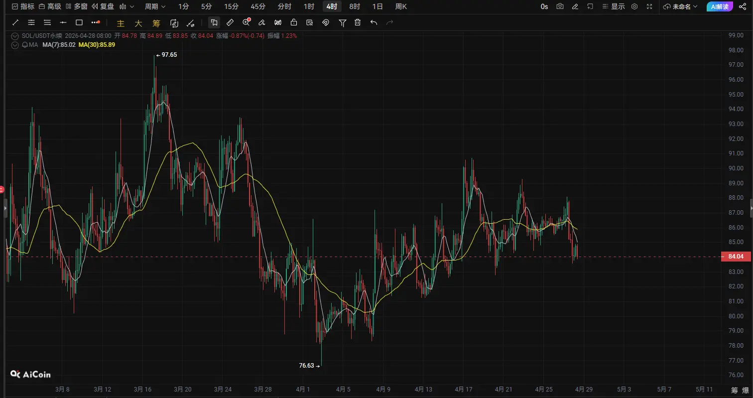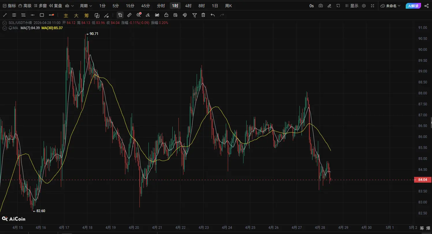 С точки зрения недавней динамики, после значительного падения ранее, SOL уже сформировал явную зону поддержки около 80. В последние несколько дней цена продолжает колебаться в диапазоне 80—88, и низкие точки постепенно повышаются, что обычно означает, что рынок находится в стадии консолидации и формирования дна.