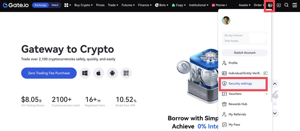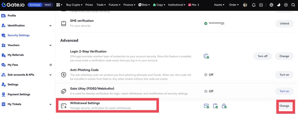 APP için: Hesaba giriş yaptıktan sonra, sol üstteki Avatar'a tıklayın, “Güvenlik Merkezi ‘ni bulun ve ardından değiştirmek için ’Para Çekme Ayarları ”na tıklayın.