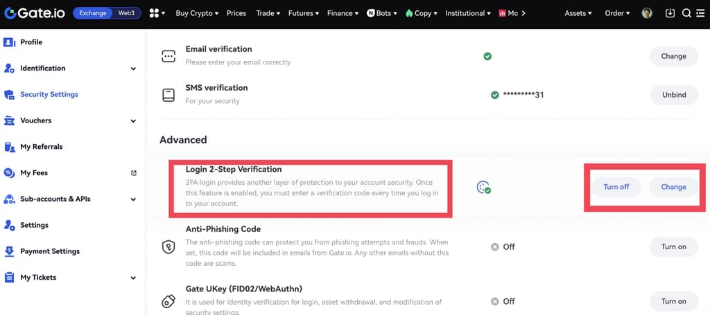 Üzerinden kurun: Web sayfasının sağ üst köşesindeki profile tıklayın, “Güvenlik Ayarları ‘nı bulun, ’Oturum Açma 2 Adımlı Doğrulama ‘ya tıklayın ve ardından gerektiği şekilde ’Aç/Kapat ‘a veya ’Değiştir ”e tıklayın.