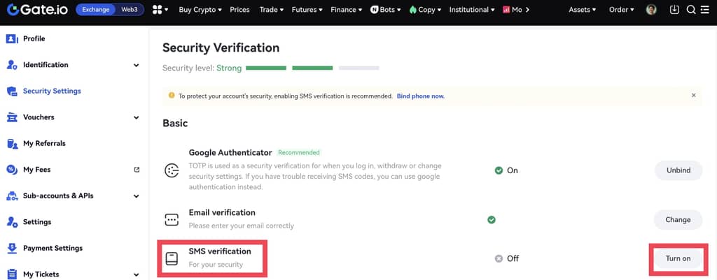 SMS doğrulamasını etkinleştirmek hesabınızın güvenliğini artırır. Bu özellik etkinleştirildiğinde, giriş ve para çekme işlemleri sırasında size bir kısa mesaj göndererek kimliğinizi doğrular.
