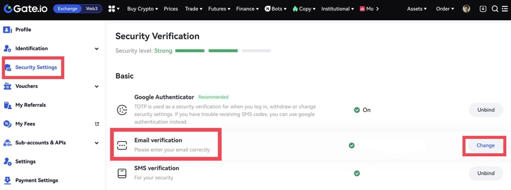 2.APP için: Oturum açın - Sol üst köşedeki avatara tıklayın - Güvenlik Merkezi - E-posta Doğrulama - Harekete geçmek için sayfa istemlerini izleyin.
