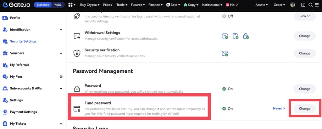 Web için: Hesabınıza giriş yaptıktan sonra, “Güvenlik Ayarları ‘na gidin, ’Şifre Yönetimi ‘nde ’Fon Şifresi ‘ni bulun ve ardından sıfırlamak için ’Değiştir ”e tıklayın.