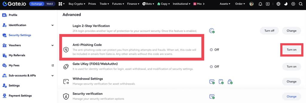 Kimlik avı önleme kodu, dolandırıcılık web sitelerini ve e-postaları tanımlamaya yardımcı olabilir: Resmi bir gate.io web sitesi bu kodu içerecektir. Bizden gönderildiğini iddia eden ancak bu kodu içermeyen herhangi bir e-posta alırsanız, bunun sahte olduğunu anlayabilirsiniz