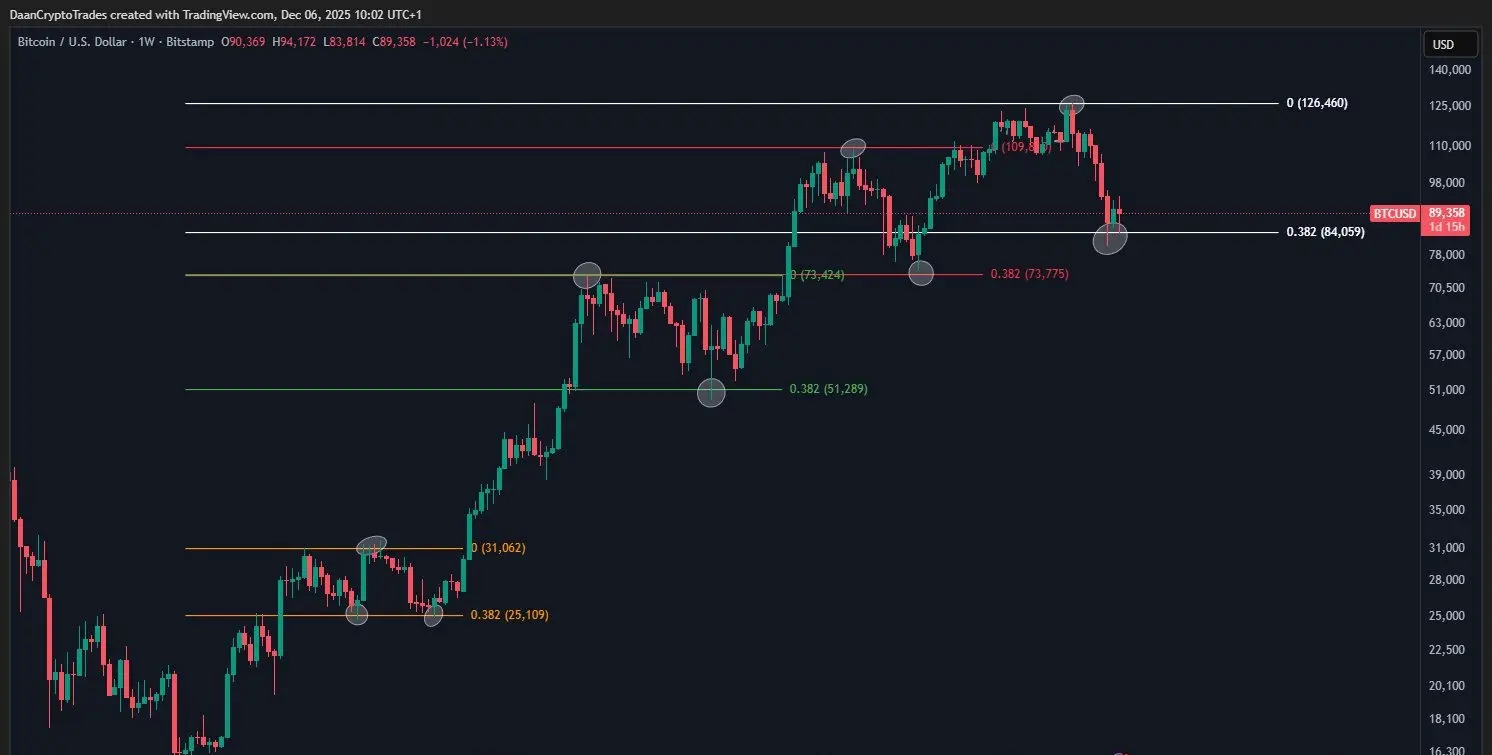 Bitcoin наразі знаходиться на критичному технічному рівні, який необхідно захистити, щоб запобігти значним втратам, згідно з криптоаналітиком “Daan Crypto Trades”.