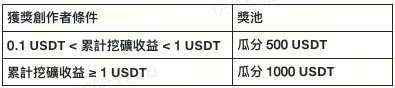 - 創作者獎勵加碼 1500 USDT:更多新人作者能瓜分獎池