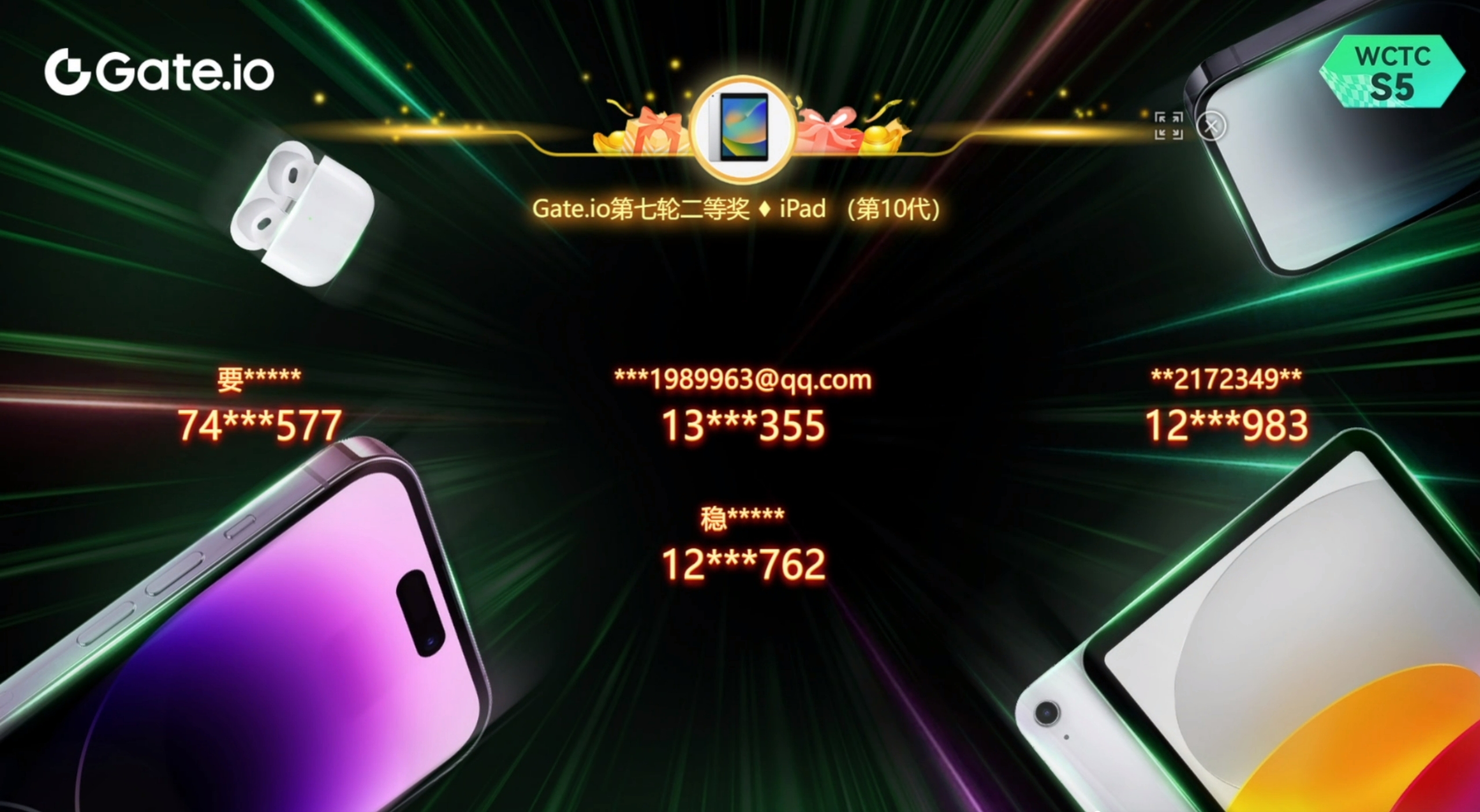 相約 Gate WCTC S5直播間,抽取蘋果全家桶,我們不見不散!
