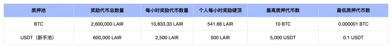 挖矿总量:3,200,000 LAIR