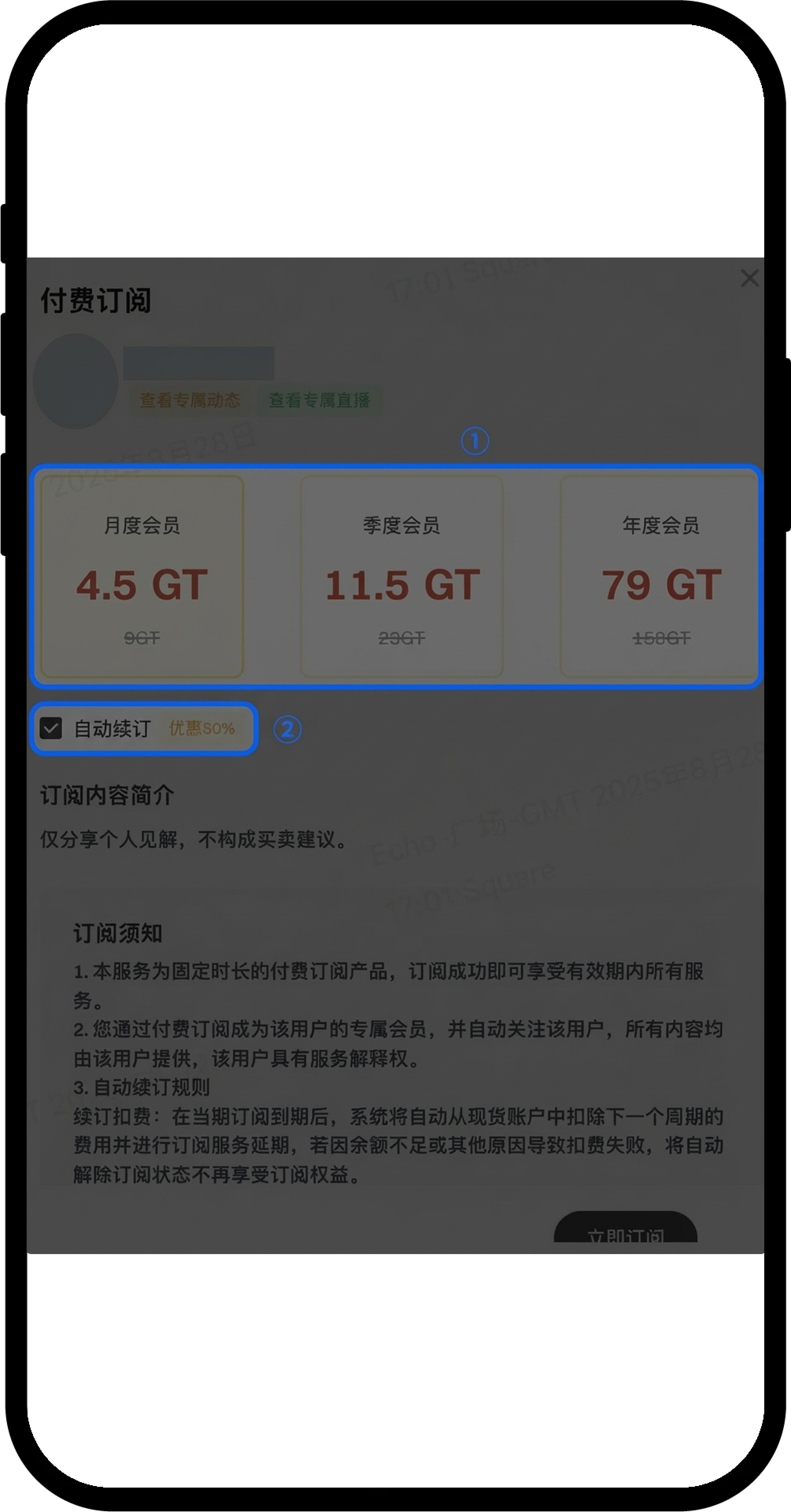 - 确认信息后点击【立即订阅】,输入资金密码完成订阅