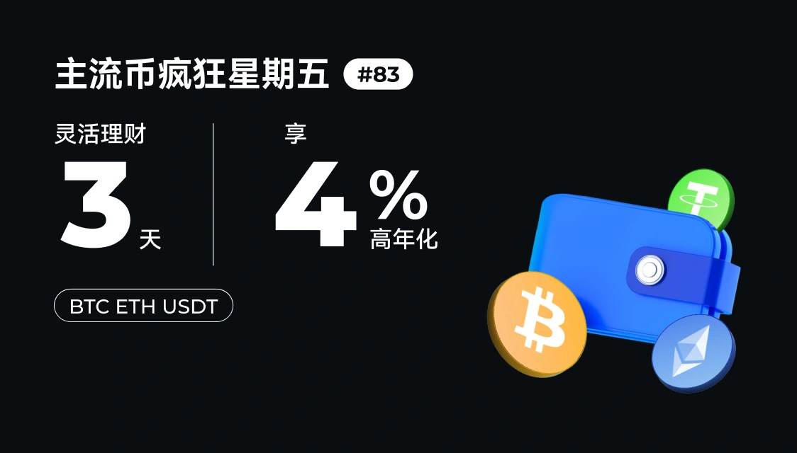 Gate 理財寶每週五上線“主流幣瘋狂星期五”活動,新老用戶一鍵參與即可享受主流幣定期理財短期高利率福利。本期活動幣種有 BTC/ETH/USDT,理財週期短至 3 天,收益率高達 4%!認購額度有限,先到先得!