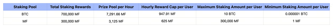 Загальна сума винагород за стейкінг: 1 000 000 MF