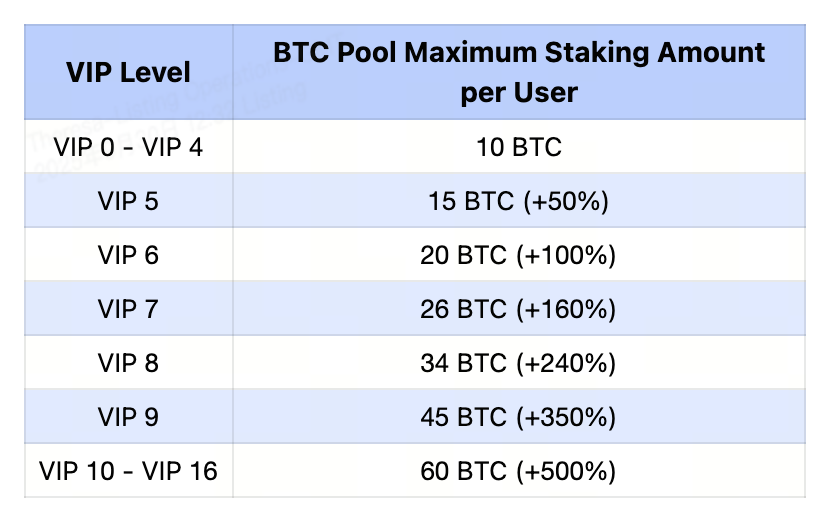 Користувачі VIP 5 та вище отримують ексклюзивні ліміти на стейкінг при участі в Launchpool, із бонусом до 500% до стандартного ліміту.