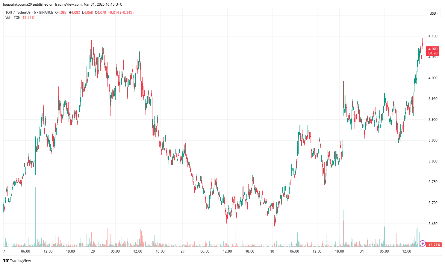 يبدو أن سعر العملة قد ارتفع بشكل كبير خلال اليوم الماضي | المصدر: TONUSDT على TradingView