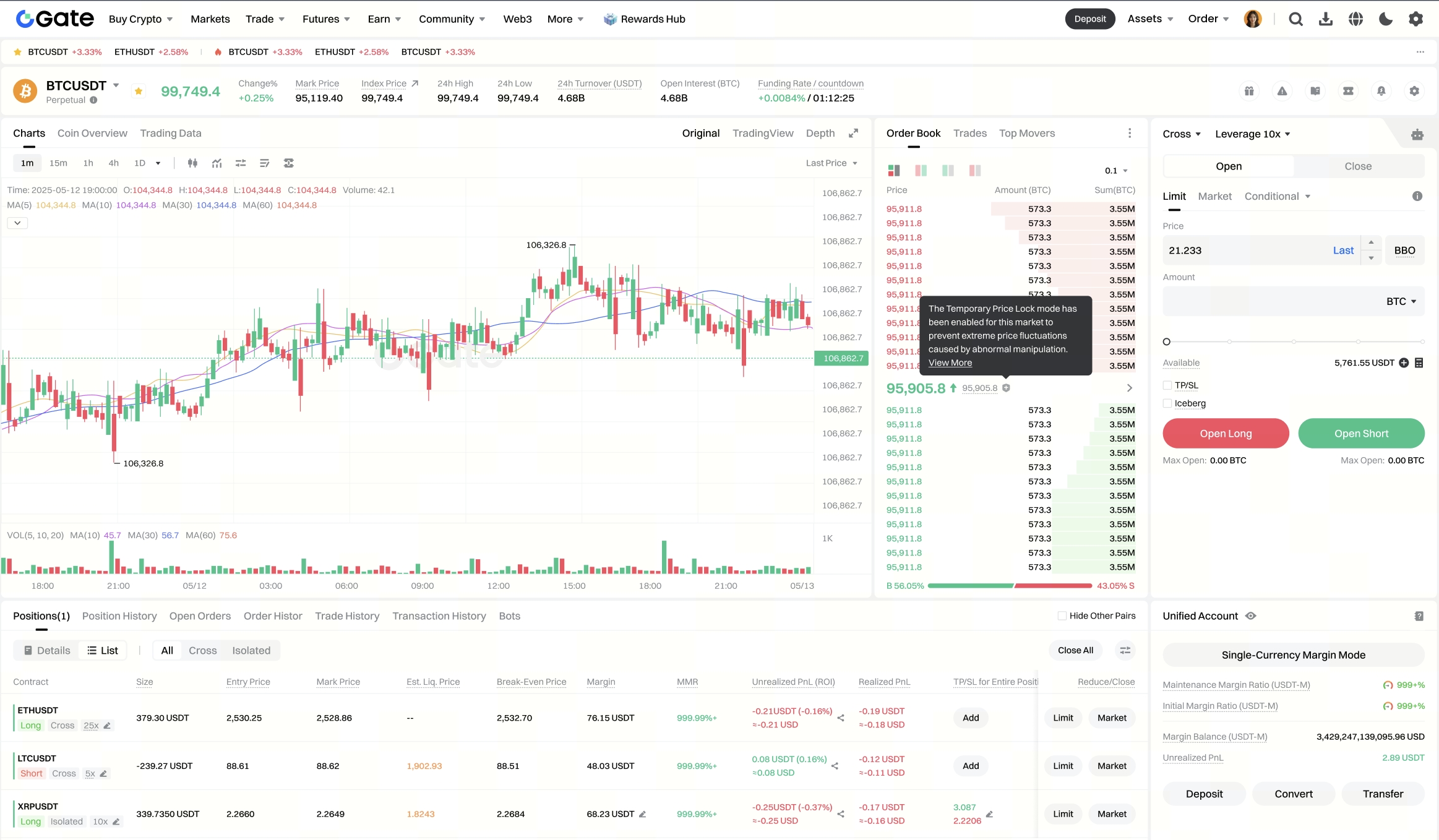 Para mejorar la estabilidad del mercado y prevenir manipulaciones malintencionadas, Gate lanza el modo de Bloqueo Temporal de Precio en mercados de futuros seleccionados, con efecto inmediato.