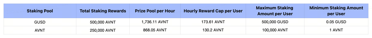 Comment participer : Connectez-vous à votre compte Gate et procédez à la vérification de votre identité - Naviguez vers Launchpool - Détenez au moins 0,05 GUSD / 1 AVNT - Cliquez sur [Stake].