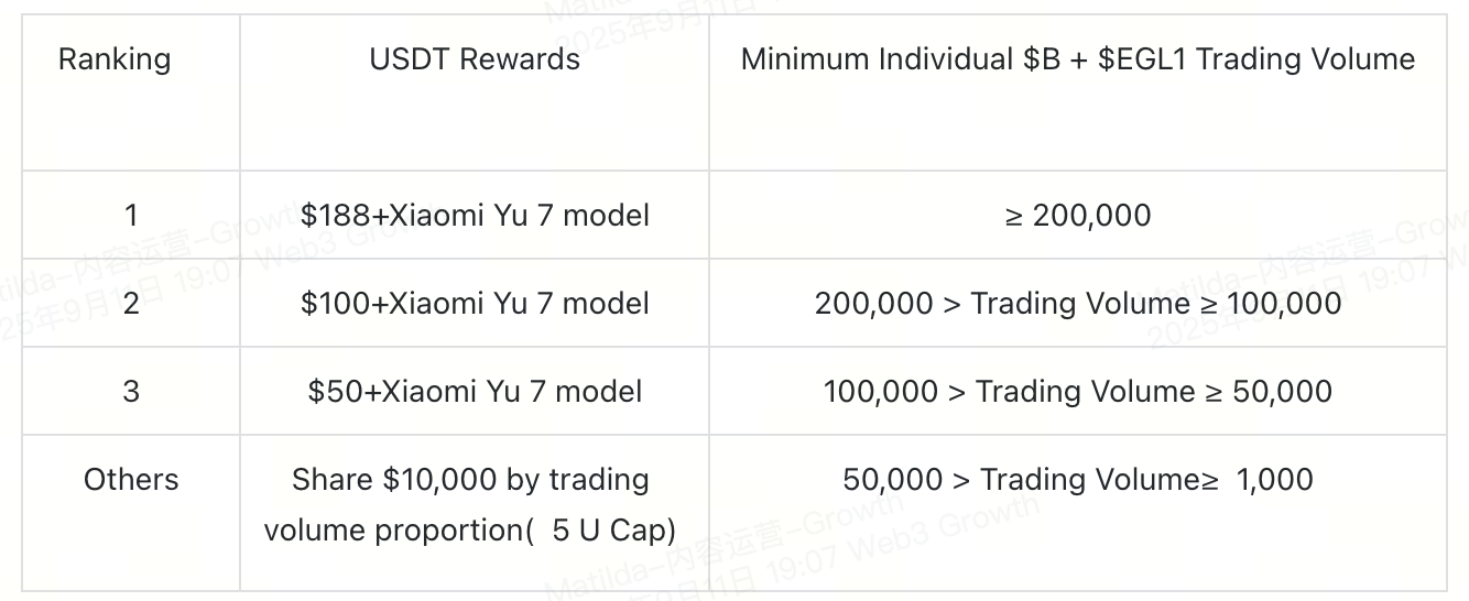 Les trois premiers utilisateurs recevront leurs récompenses selon le principe du premier arrivé, premier servi et pourront obtenir un modèle Xiaomi Yu 7 (équivalent à 100 USDT).