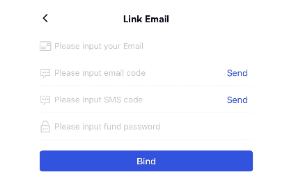 Saisissez toutes les informations requises (adresse email, code de vérification de l'email, code de vérification du SMS et mot de passe du fonds). Une fois que tous les champs sont correctement remplis, confirmez l'association de cette adresse email à votre compte.