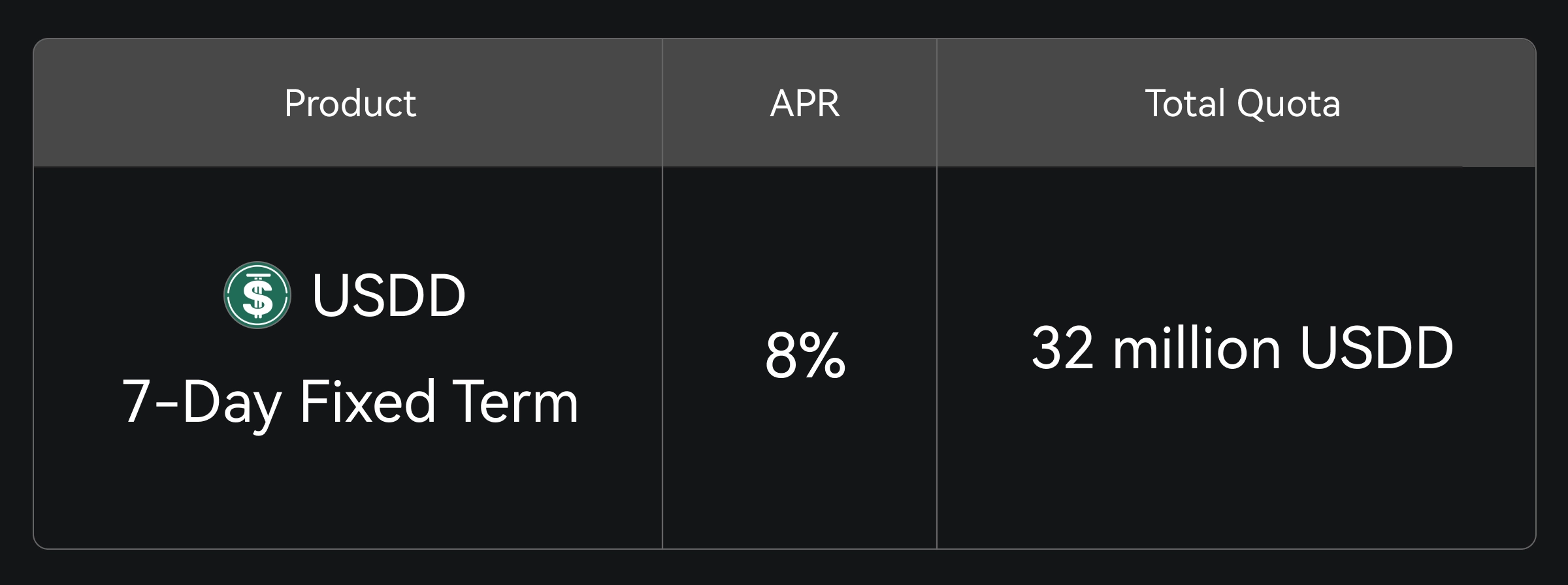 Gate Simple Earn menawarkan rencana USDD 7-Hari Berjangka Tetap dengan waktu terbatas dan APR 8%. Total pasokan adalah 32 juta USDD, tersedia selama persediaan masih ada.
