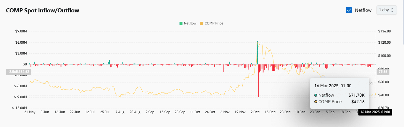 Sentimen pasar menunjukkan penjual tidak menyerah, terus menjual COMP karena kepercayaan melemah.