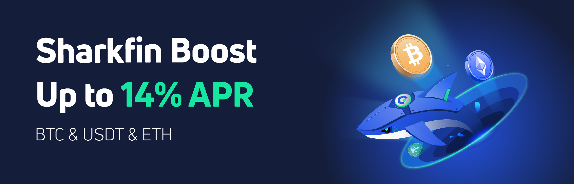 The highlight of the Sharkfin Boost principal-guaranteed financial product lies in its guaranteed minimum interest rate of up to 7%, with the highest APR reaching 14%, bringing you steady and efficient investment returns. This product supports three mainstream cryptocurrencies: BTC, ETH, and USDT, offering you flexibility while enjoying high returns.