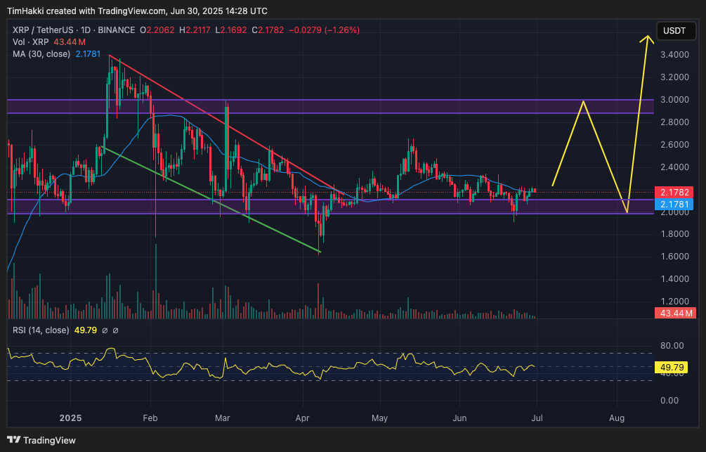 テクニカル指標は、XRPのチャートが第一四半期にブルフラッグを形成したことを示しており、今年の夏には3.50ドルに上昇する可能性があり、2018年1月に記録された3.40ドルの歴史的高値を超えるかもしれません。