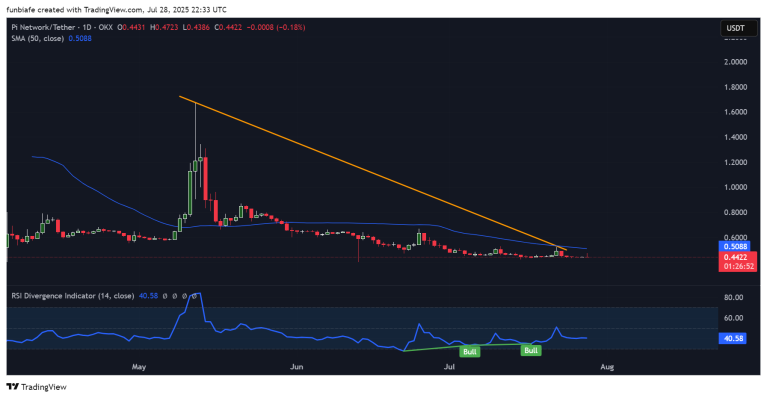 Pi Network(PI)の価格分析:Pi Coinは短期的に0.44ドルを失いましたが、売り手の力は衰えています