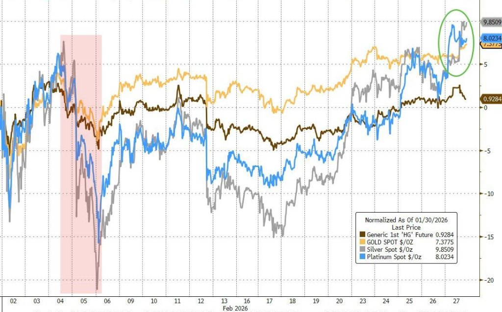 • At New York close, spot gold up 1.75%, hitting a daily high of $5,275.82/oz, up 7.84% in February.