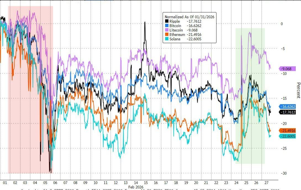 Amid widespread risk aversion, cryptocurrencies faced sell-offs. Bitcoin dropped 3%, Ethereum fell over 5%, breaking below $2,000. Bitcoin has declined for five consecutive months in February.