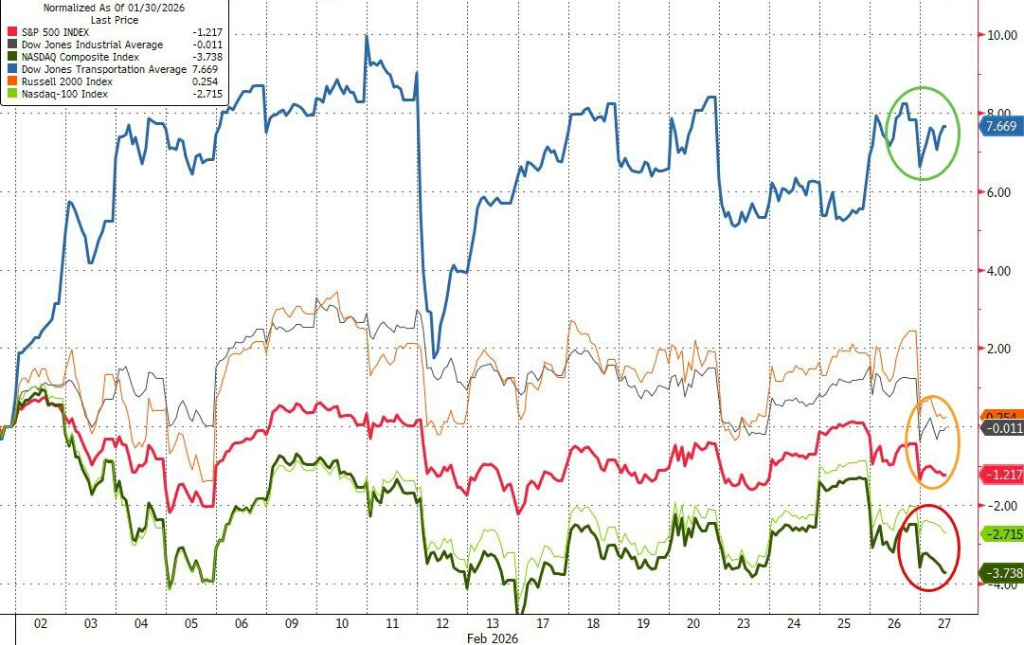 • The U.S. tech giants (Magnificent 7) index fell 1.83%, to 193.36 points, down 2.18% this week, and 6.57% in February.