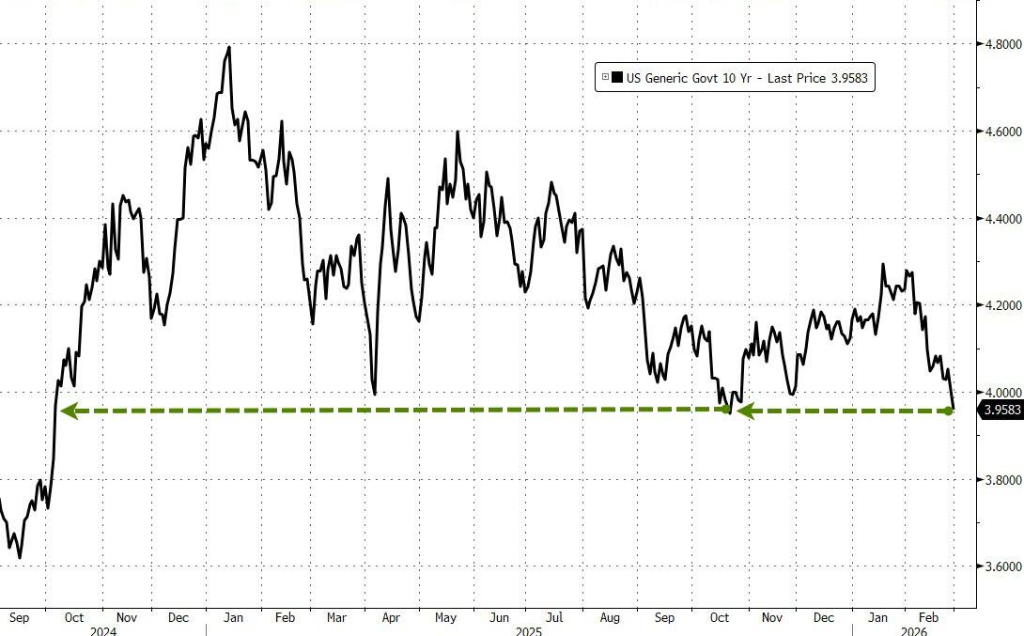 Amid rising risk aversion, the 10-year Treasury yield fell 5.7 basis points, breaking below the 4.00% psychological level for the first time since October last year. Herman Chan, Bloomberg industry analyst, comments: