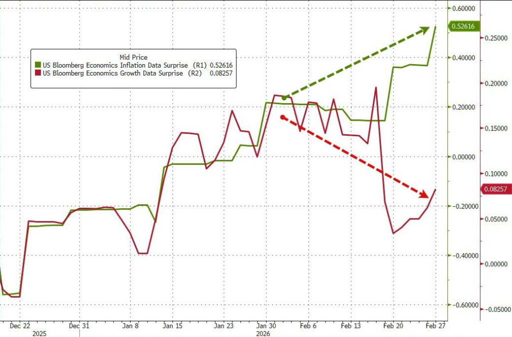 According to Wallstreetcn, U.S. core PPI in January grew at the fastest pace in a year, complicating Federal Reserve monetary policy. Data confirms the “reverse Goldilocks” theory: inflation unexpectedly rose while economic growth unexpectedly slowed.