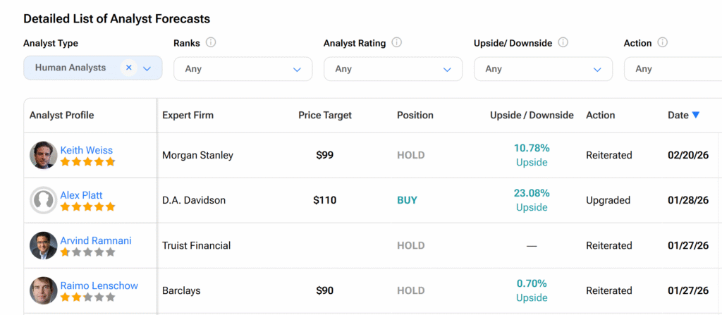 The banking giant cited rising skepticism about the New Jersey-based company’s ability to confidently deliver its ambitious growth targets. Morgan Stanley’s five-star analyst Keith Weiss stepped forward with a price target of $99, implying about 10% upside.