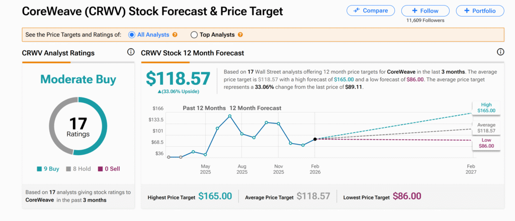 However, the average CRWV price target of $118.57 implies about 33% growth potential.