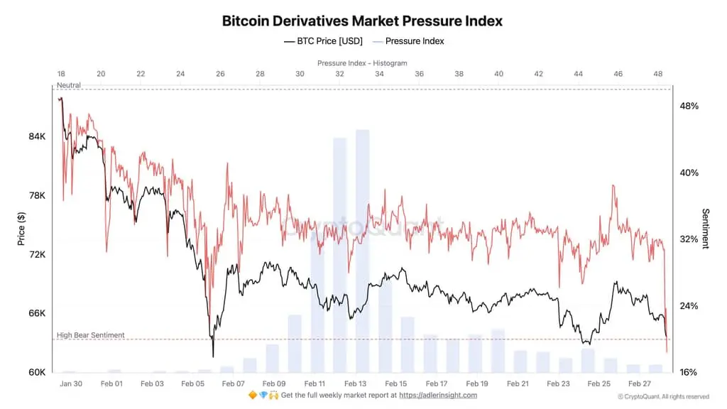 Fact: On February 28, Israel’s Defense Minister announced a state of emergency, followed shortly by U.S. officials confirming that U.S. forces had conducted military strikes against targets inside Iran. This news quickly shook global financial markets. Due to the weekend, stocks, bonds, and commodities markets were closed, leaving Bitcoin, with its global liquidity and continuous trading, under immediate pressure. According to monitoring, within just one hour of the conflict confirmation, Bitcoin’s sell volume surged to about $1.8 billion, causing BTC price to approach $63,000 multiple times within hours, hitting a monthly low.