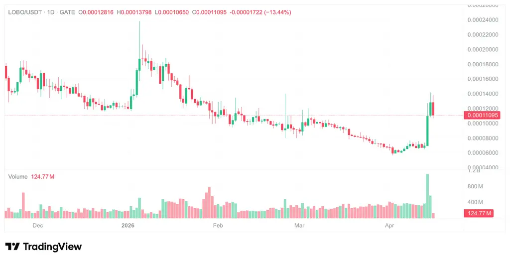 As of April 16, 2026, based on Gate exchange data, LOBO’s market performance exhibits the following structural features: