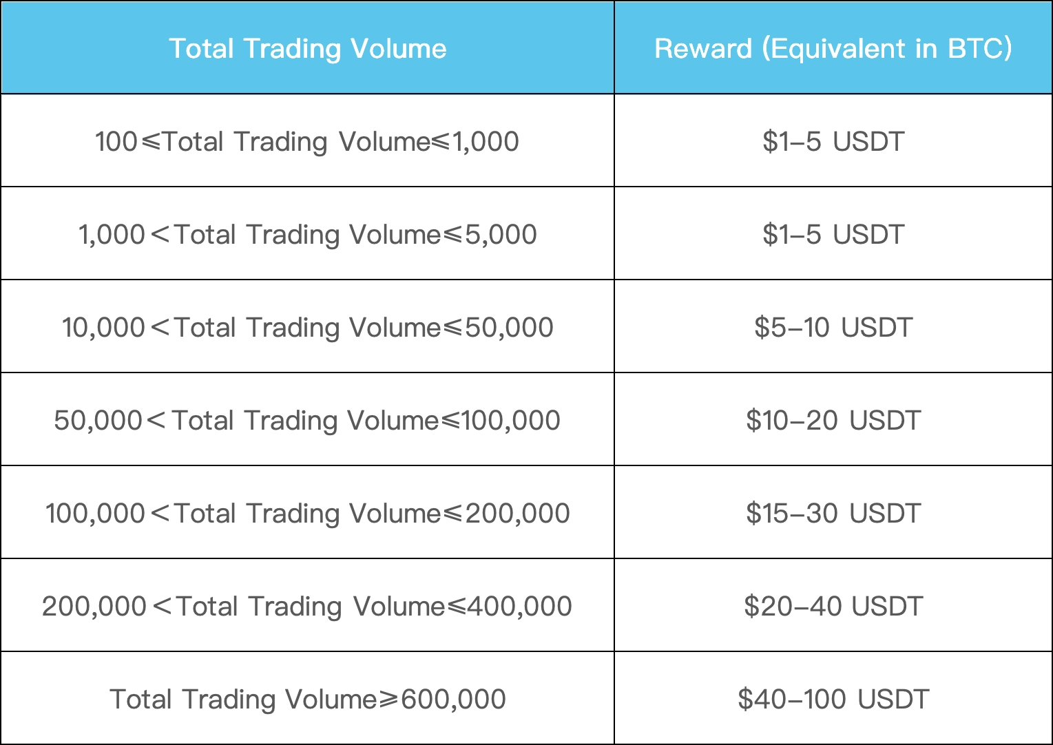 Durante o evento, tanto os usuários novos quanto os existentes que atenderem aos requisitos de volume de negociação à vista e por contrato poderão obter recompensas correspondentes de um prêmio total de US$ 20.000, disponível por ordem de chegada! Detalhes a seguir: