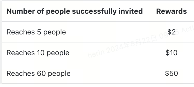 Os usuários compartilham este evento com amigos através do link de compartilhamento. Quando os amigos convidados fazem login na página do evento e concluem qualquer tarefa, o convidante pode receber uma recompensa de até US$ 50.