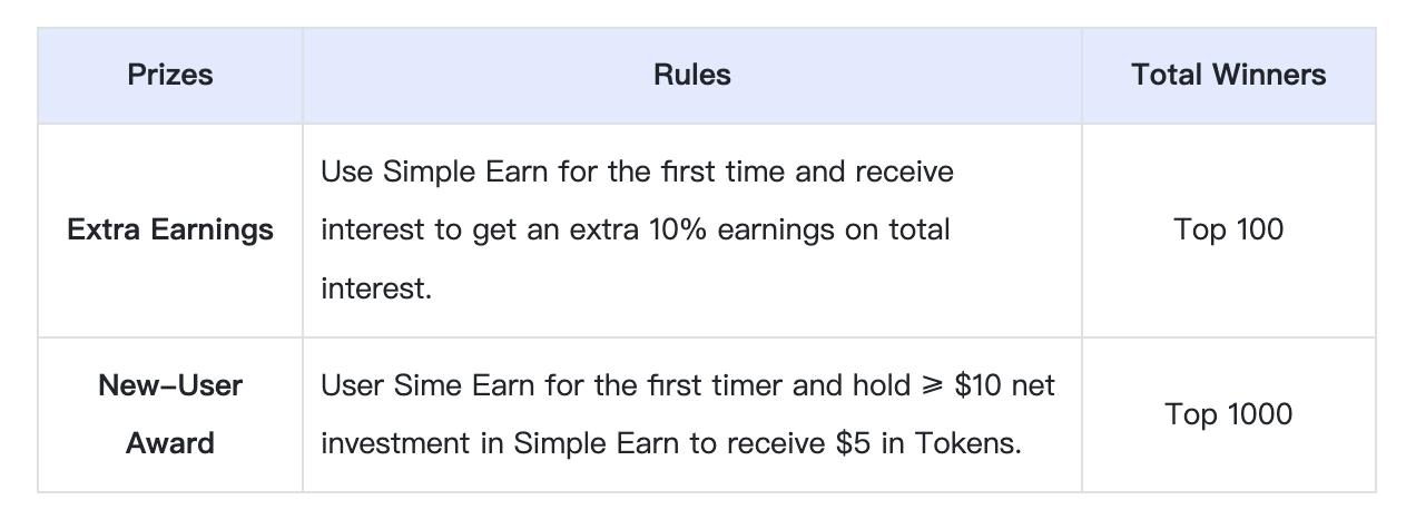Durante a atividade, os usuários iniciantes do Simple Earn podem desfrutar de ganhos extras de 10% ou recompensas em pontos.