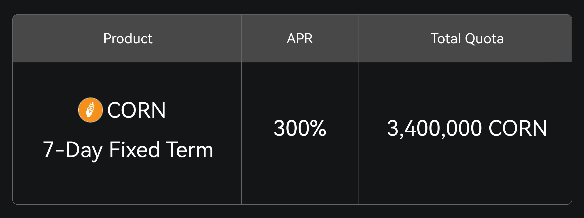 Gate Simple Earn lançou o produto de prazo fixo de 7 dias CORN, oferecendo até 300% APR. Com uma alocação limitada de 3,4 milhões de CORN disponíveis por ordem de chegada, não perca.