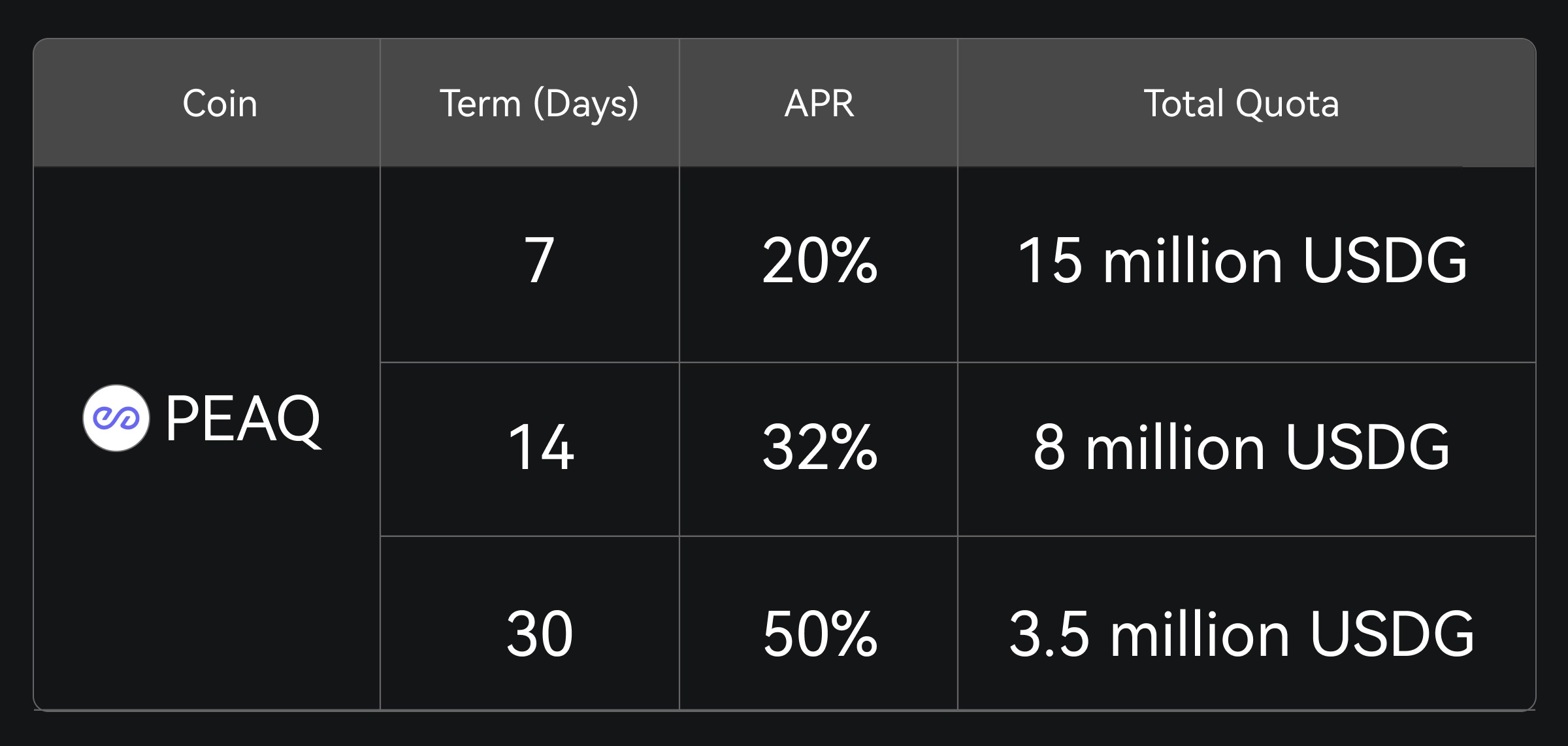Gate Simple Earn lançou oficialmente o plano PEAQ Fixed Term, oferecendo períodos de bloqueio flexíveis de 7, 14 e 30 dias. Aproveite uma APR de até 50%, com uma assinatura mínima de apenas 5 PEAQ. Não perca – assine agora!