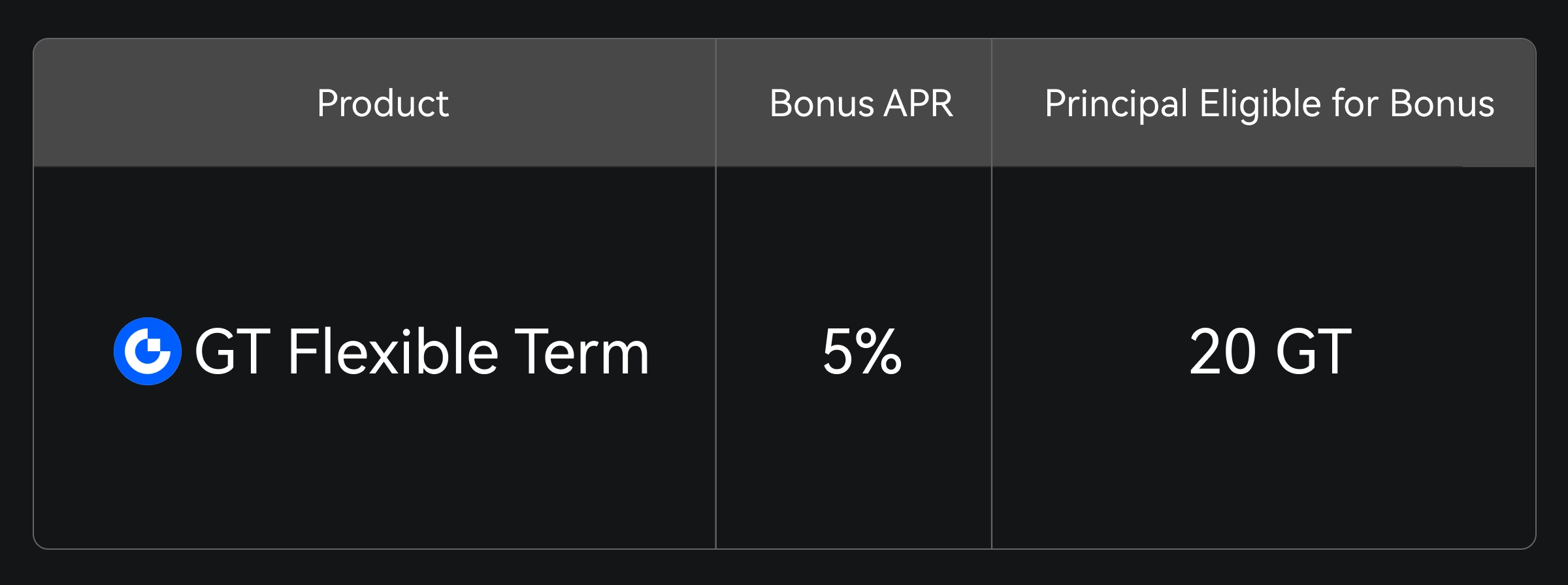 Simple Earn oferece um bônus extra para GT Flexible Term! Além do retorno anualizado regular, aproveite o bônus extra de LION, com APR combinado de até 10%. Um total de 778.816 LION está disponível – primeiro a chegar, primeiro a ser servido.