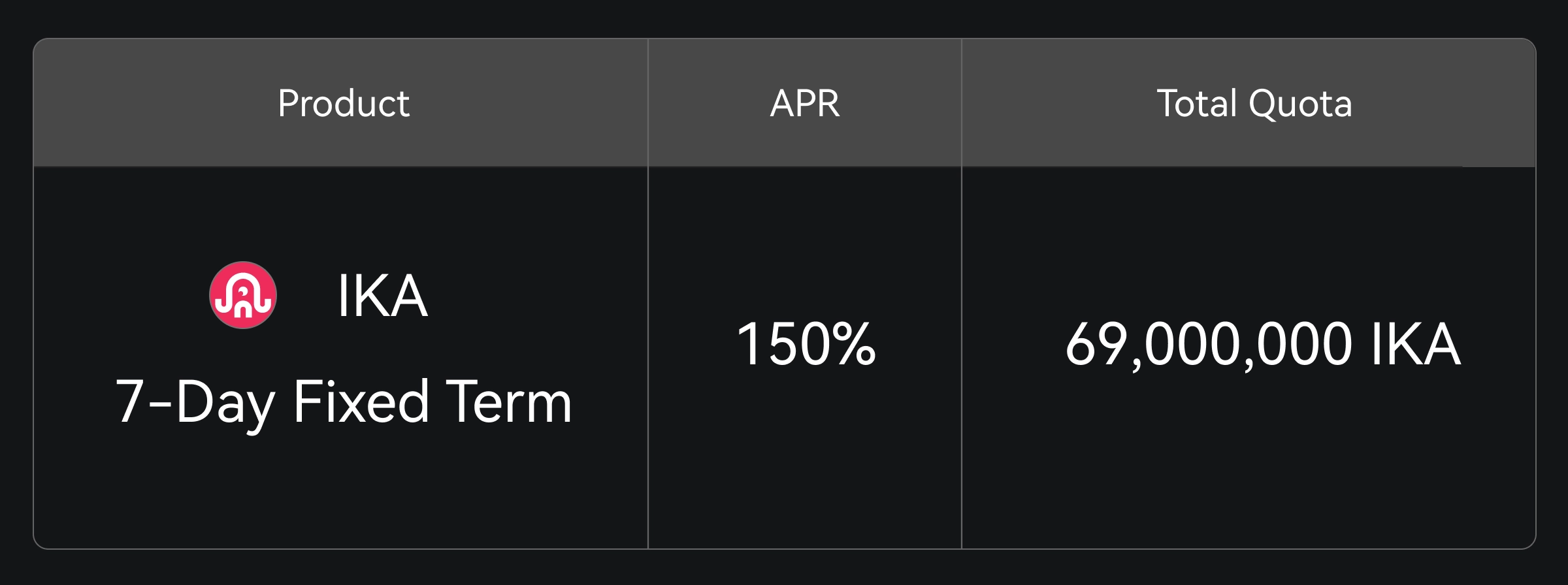A Gate Simple Earn lançou o produto de prazo fixo de 7 dias IKA, oferecendo até 150% APR. Com uma alocação limitada de 69 milhões de IKA disponível por ordem de chegada, não perca.