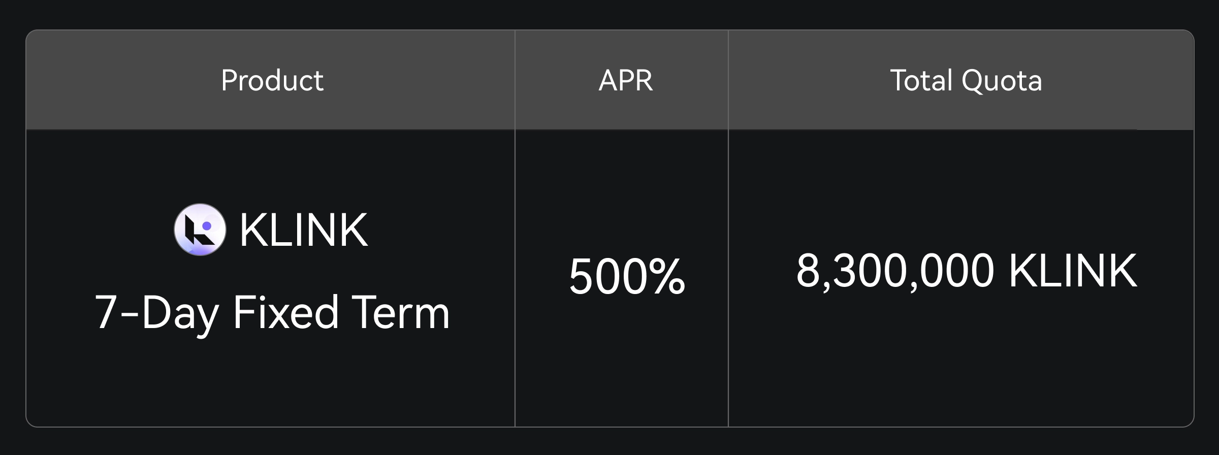 Gate Simple Earn está oferecendo um plano KLINK de Prazo Fixo de 7 Dias com APR de 500%, disponível por tempo limitado. A oferta total é de 8.300.000 KLINK, disponível enquanto durarem os estoques.